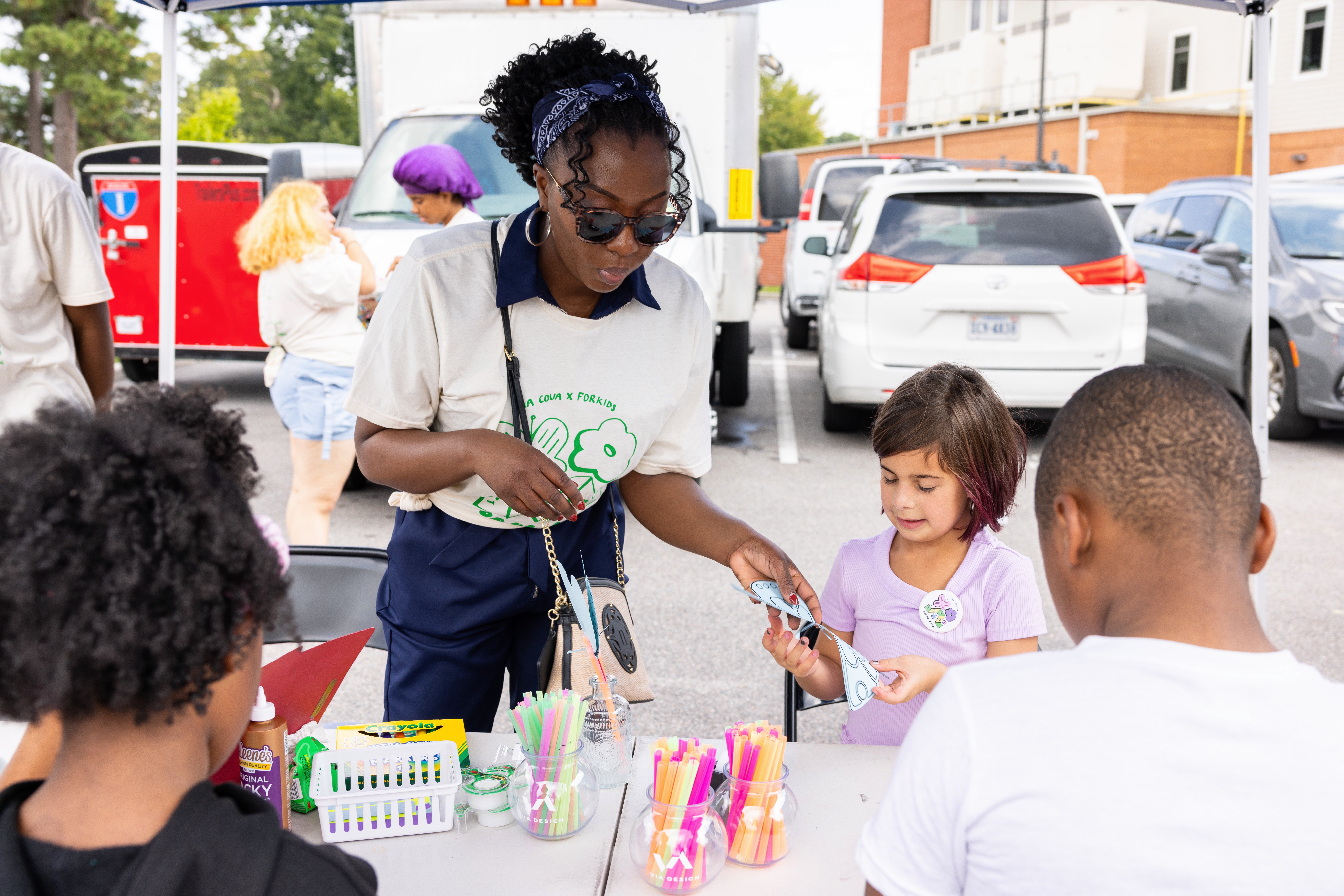 Last Fall, The American Institute of Architects Coastal Virginia Chapter (AIA CoVA) and ForKids, a local nonprofit dedicated to supporting homeless and at-risk families and children, joined forces to create a vibrant and playful pop-up park at the ForKids Landmark Center in South Norfolk. The goal of the project was to offer a vibrant, playful, and memorable experience for children and families at ForKids, as well as to activate a new community amenity for the South Norfolk neighborhood.