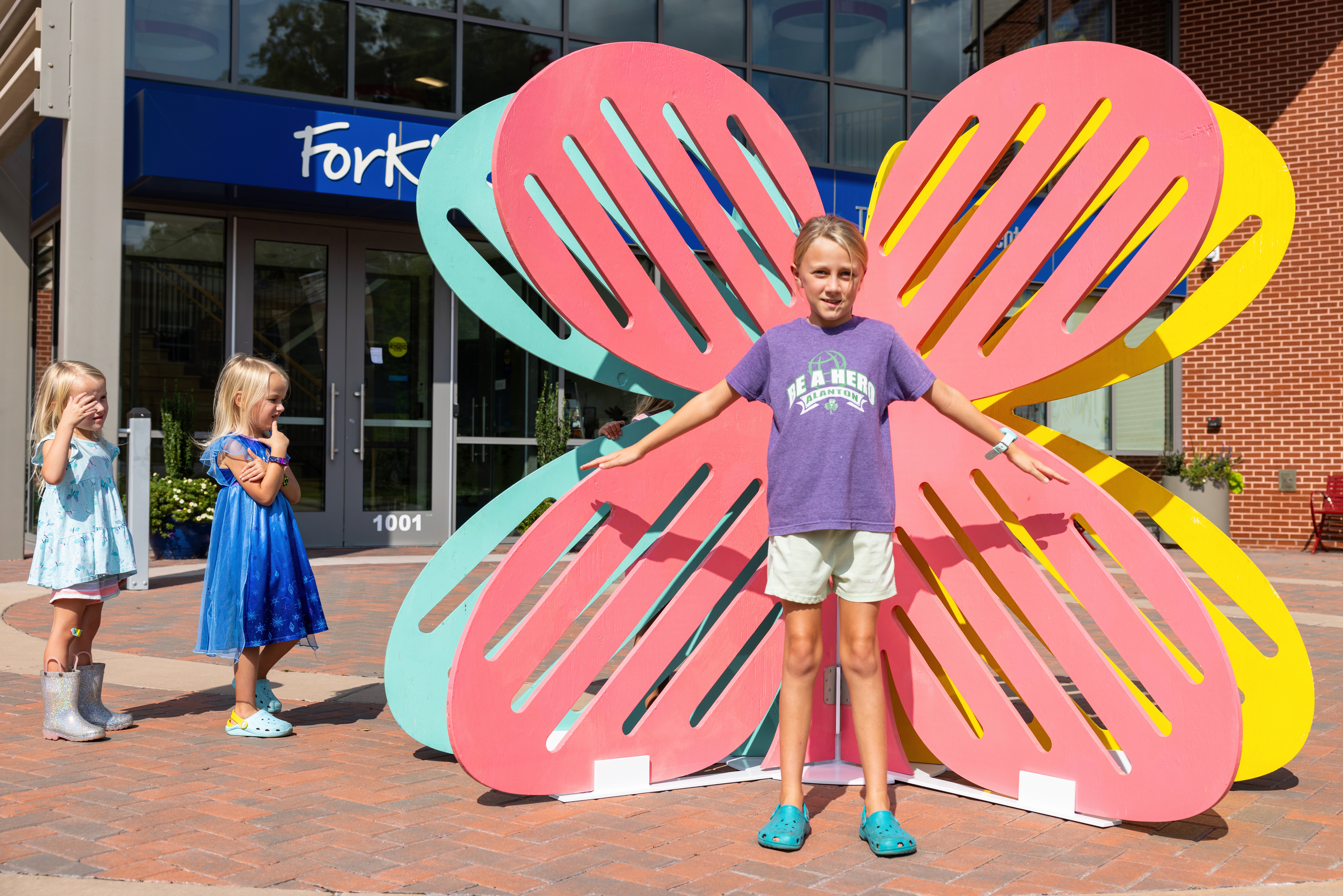 Over the course of two and a half months, VIA Project Designers Andre Rezaie, Ayesha Shaikh, and Beatrice Nzeyimana, who are all active members of AIA CoVA, led VIA’s efforts on this project. Andre, in collaboration with Hanbury’s Holly McNeilly, designed the iconic butterfly sculpture, a centerpiece of the park. The sculpture was designed to attract passersby and provide a memorable backdrop for photos. Ayesha, a skilled organizer, coordinated a diverse group of volunteers, including colleagues, industry professionals, and high school students, to ensure day-of success leading up the event.